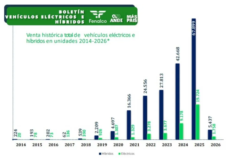El crecimiento en el país ha sido progresivo y constante, impulsado por incentivos tributarios, la exención de pico y placa en algunas ciudades, la reducción de aranceles para vehículos eléctricos y una mayor oferta de modelos híbridos y eléctricos.